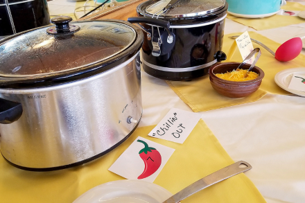 We had a tie for the tastiest dish! Debbie Counter’s Chili came head to head with Bridget Overson’s Buffalo Chicken Salad Wraps!